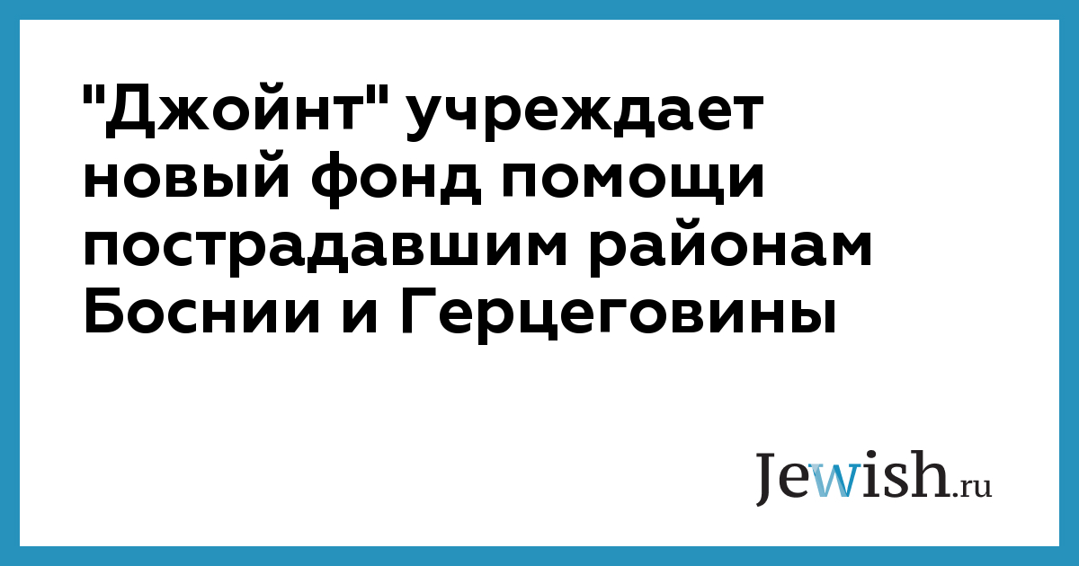 "Джойнт" учреждает новый фонд помощи пострадавшим районам Боснии и Герцеговины