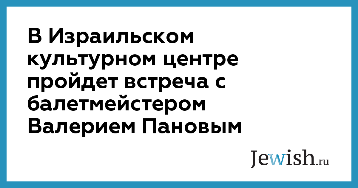 В Израильском культурном центре пройдет встреча с балетмейстером Валерием Пановым