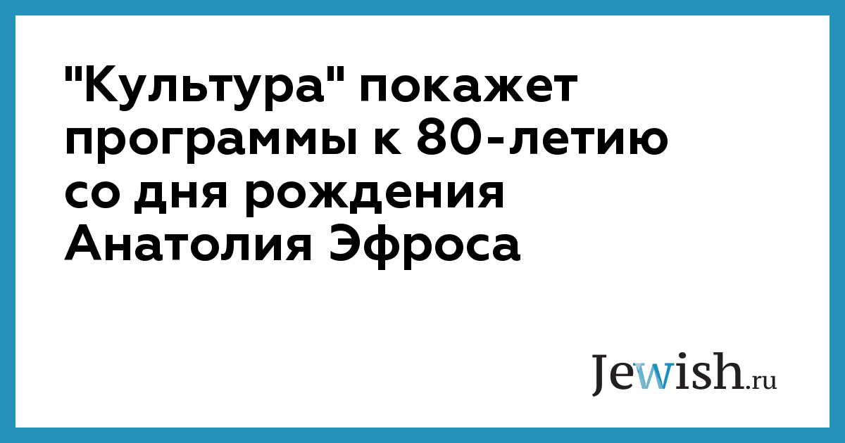 На телеканале "Культура" к 80-летию со дня рождения Анатолия Эфроса 25 июня в 14.40 будет показан спектакль Театра на Малой Бронной "Месяц в деревне", 2 июля в 15.00 – телеспектакль "Страницы из жизни Печорина", 3 июля в 18.15 – телевизионный фильм "Таня", 3 июля в 20.10 — документальный фильм "Анатолий Эфрос" из цикла "Острова".