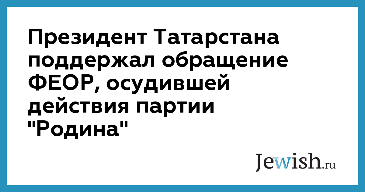 Президент Татарстана поддержал обращение ФЕОР, осудившей действия партии "Родина"