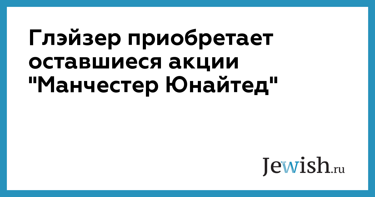 Глэйзер приобретает оставшиеся акции "Манчестер Юнайтед"