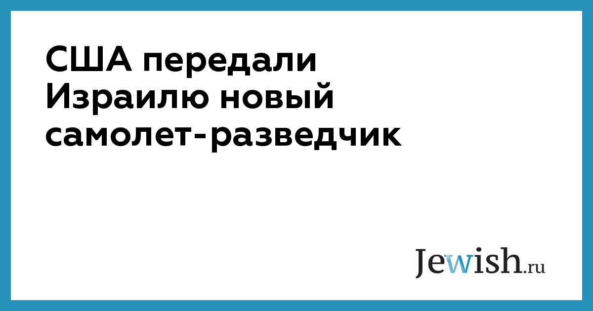 США передали Израилю первый из четырех новых самолетов-разведчиков дальнего радиуса действия. Об этом сообщают местные СМИ.