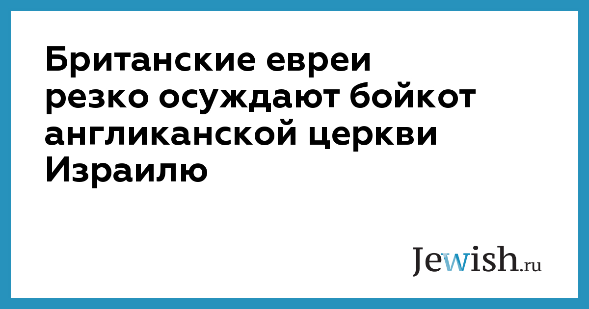 Британские евреи резко осудили решение англиканской церкви прекратить инвестиции в израильские проекты.