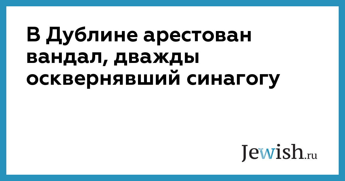 В Дублине арестован вандал, дважды осквернявший синагогу