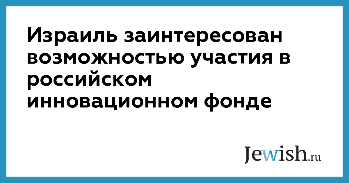 Израиль заинтересован возможностью участия в российском инновационном фонде