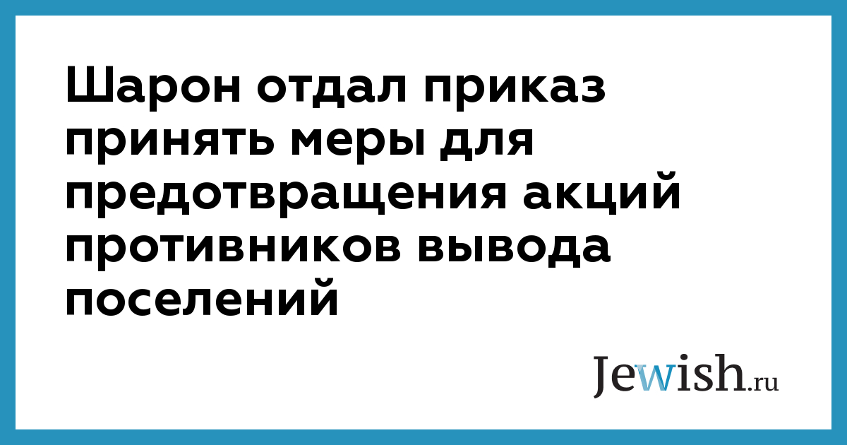 Шарон отдал приказ принять меры для предотвращения акций противников вывода поселений