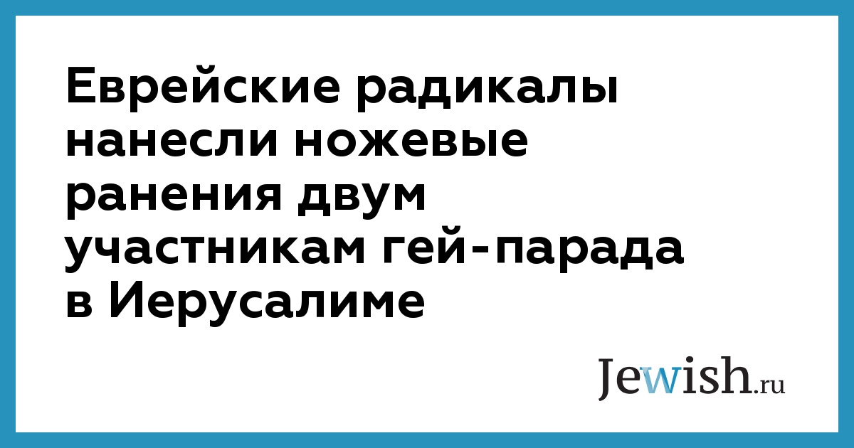 Еврейские религиозные радикалы напали на участников парада сексуальных меньшинств, который проходил в четверг в Иерусалиме. В результате два человека получили легкие ножевые ранения. Как сообщает Ha'aretz, ранения получили мужчина и женщина, их доставили в больницу "Шаарей Цедек" для оказания медицинской помощи. Травмы нанесены еще одному частнику парада, сообщили в службе медицинской помощи "Маген Давид Адом".