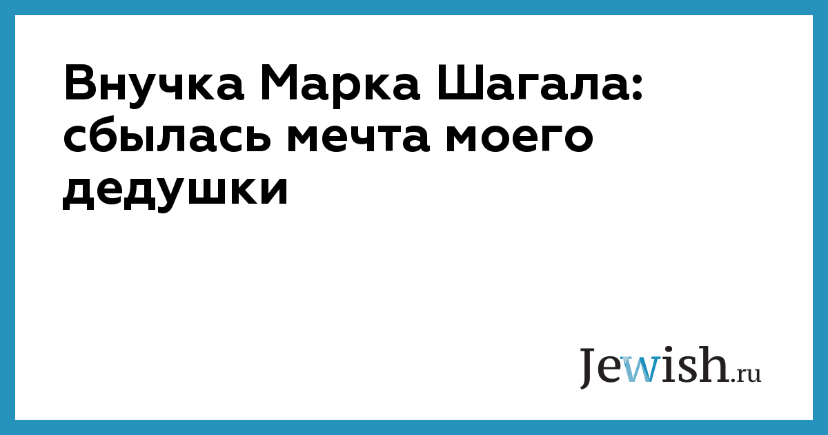 Внучка Марка Шагала: сбылась мечта моего дедушки