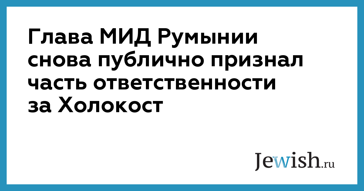 Глава МИД Румынии снова публично признал часть ответственности за Холокост