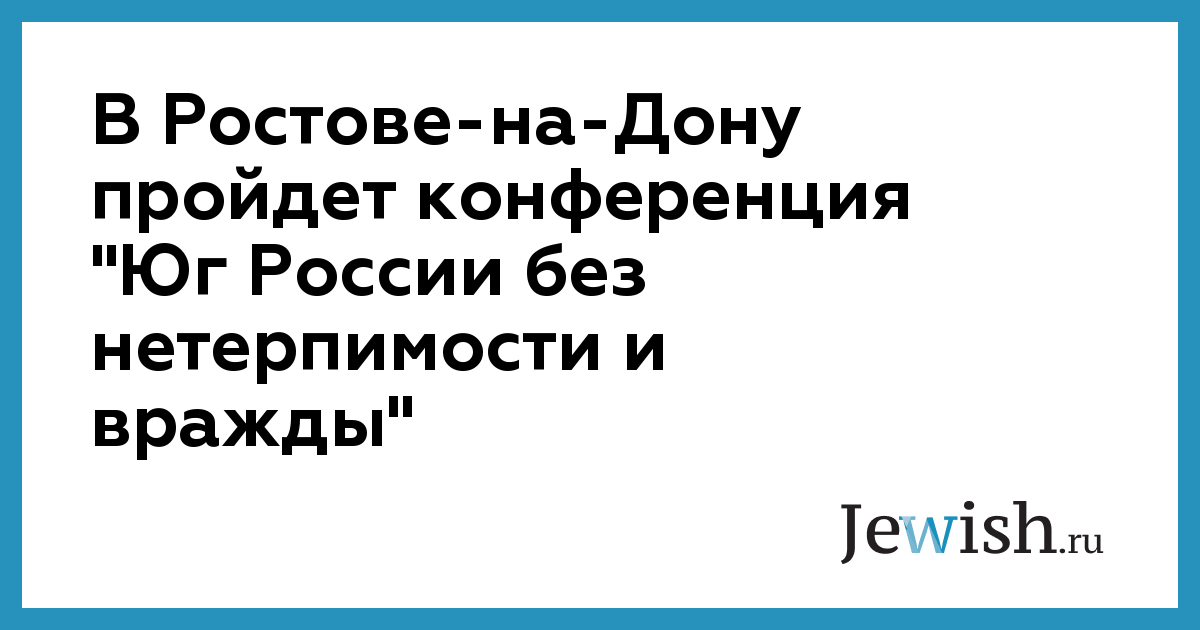 Межрегиональная конференция «Юг России без нетерпимости и вражды: преодоление проблем ксенофобии и экстремизма» пройдет 8-9 июля в Ростове-на-Дону.