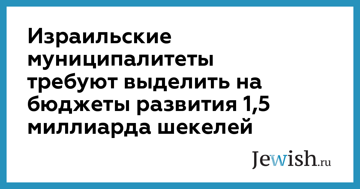Израильские муниципалитеты требуют выделить на бюджеты развития 1,5 миллиарда шекелей