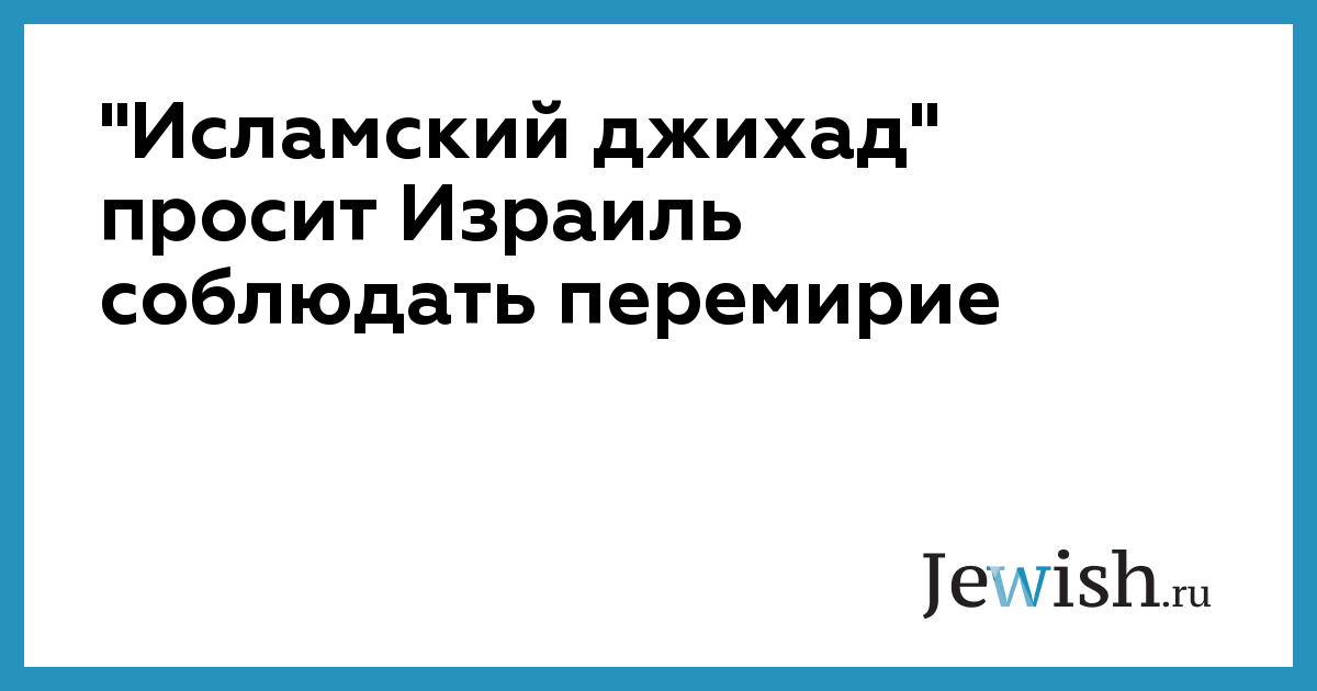 "Исламский джихад" просит Израиль соблюдать перемирие