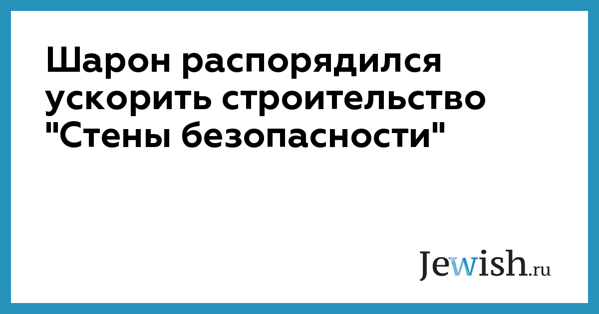 Премьер-министр Израиля Ариэль Шарон дал указание ускорить строительство "стены безопасности", отделяющей Израиль от палестинских земель на Западном берегу р.Иордан. Строительство защитного ограждения началось боле двух лет назад, однако на сегодняшний день забор возведен лишь на треть. По окончании строительства его протяженность должна составить почти 700 км. Руководство Израиля считает, что "стена безопасности" поможет защитить израильские города от проникновения палестинских боевиков для совершения терактов. Палестинская сторона рассматривает строительство защитного ограждения как захват земли.