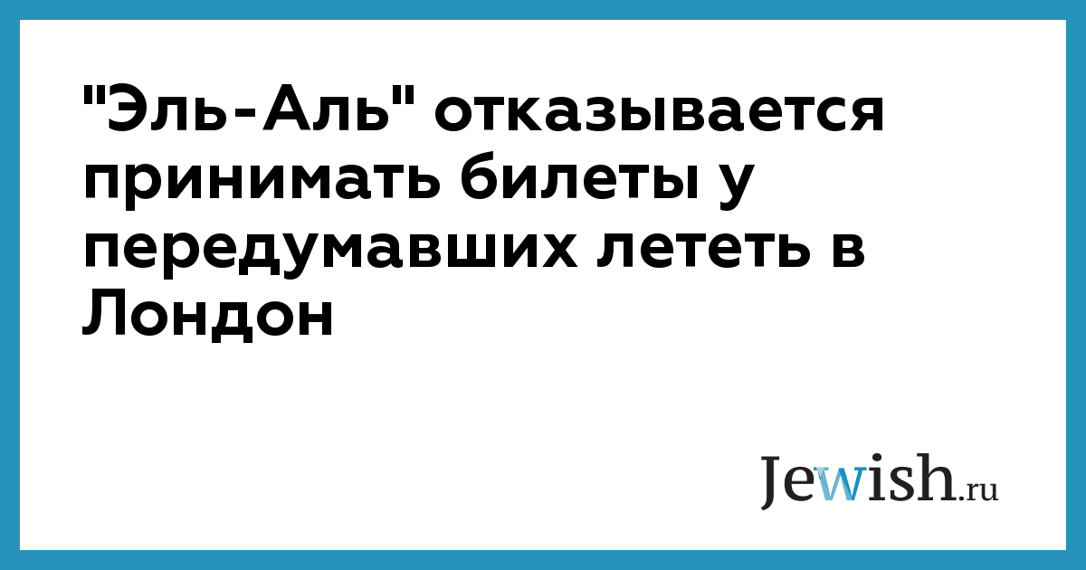 Представители авиакомпании "Эль-Аль" объявили, что не намерены принимать обратно билеты у желающих отказаться от полета рейсом Тель-Авив — Лондон. Об этом сообщило израильское "Армейское радио".