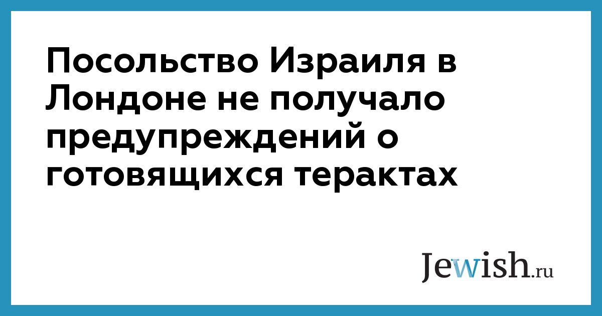 В посольстве Израиля в Лондоне заявляют, что не получали предупреждений от полиции британской столицы о готовящихся терактах, сообщает израильский информационный сайт "Аруц Шева".