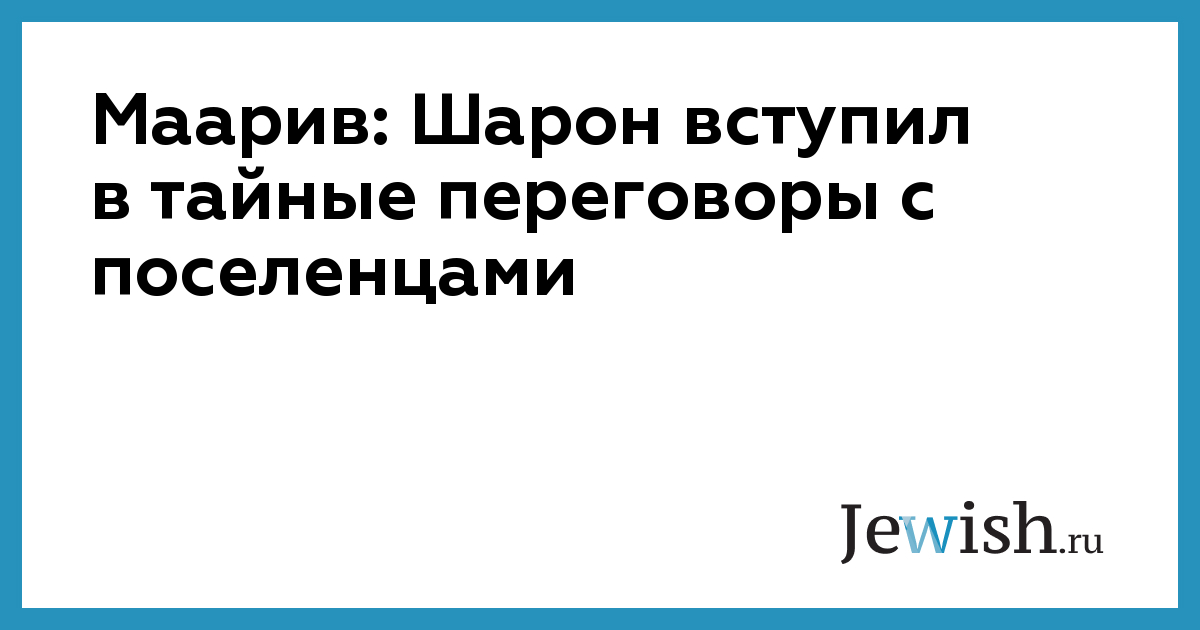 Маарив: Шарон вступил в тайные переговоры с поселенцами