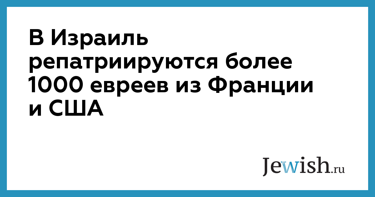 В Израиль репатриируются более 1000 евреев из Франции и США