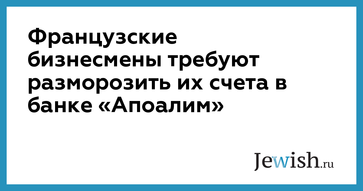 Французские бизнесмены требуют разморозить их счета в банке «Апоалим»