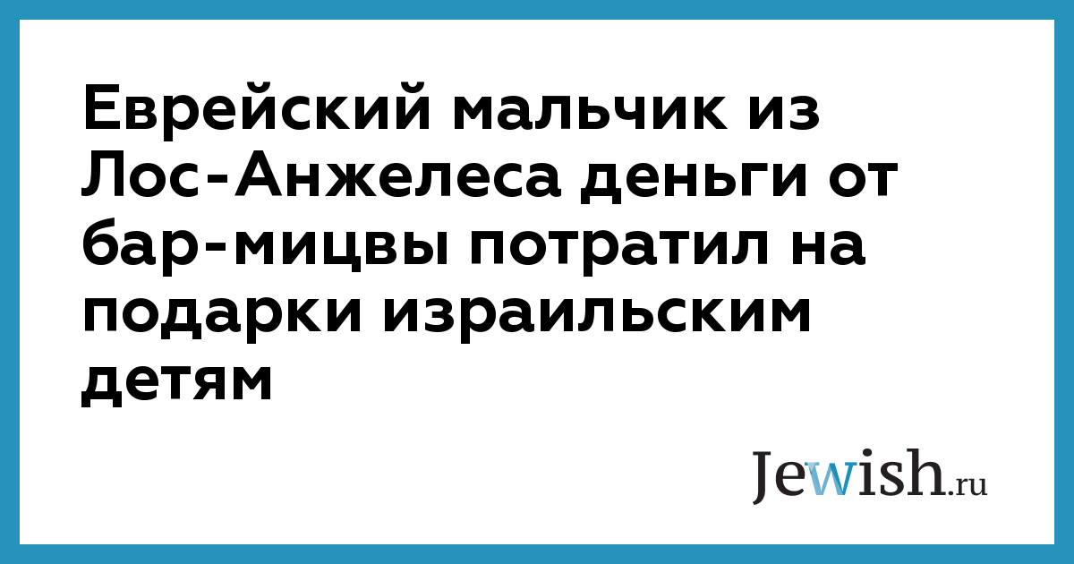 Еврейский мальчик из Лос-Анжелеса деньги от бар-мицвы потратил на подарки израильским детям
