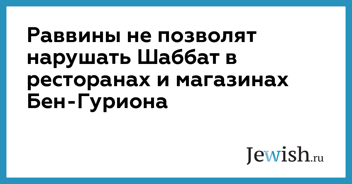 Раввины не позволят нарушать Шаббат в ресторанах и магазинах Бен-Гуриона