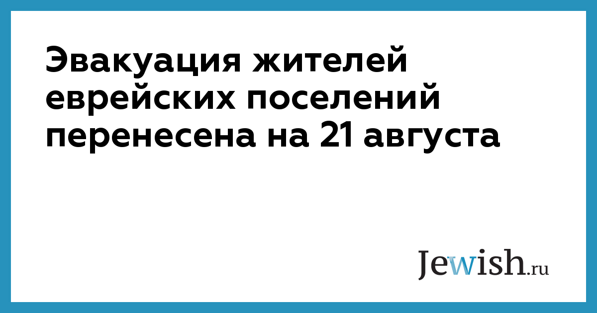 Эвакуация жителей еврейских поселений перенесена на 21 августа