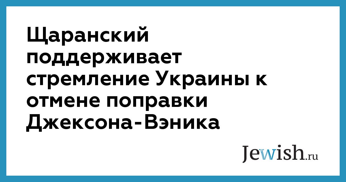 Известный израильский политик, правозащитник, бывший член правительства Натан Щаранский поддерживает стремление Украины относительно отмены введенной США в отношении СССР поправки Джексона-Вэника, передает Интерфакс-Украина.