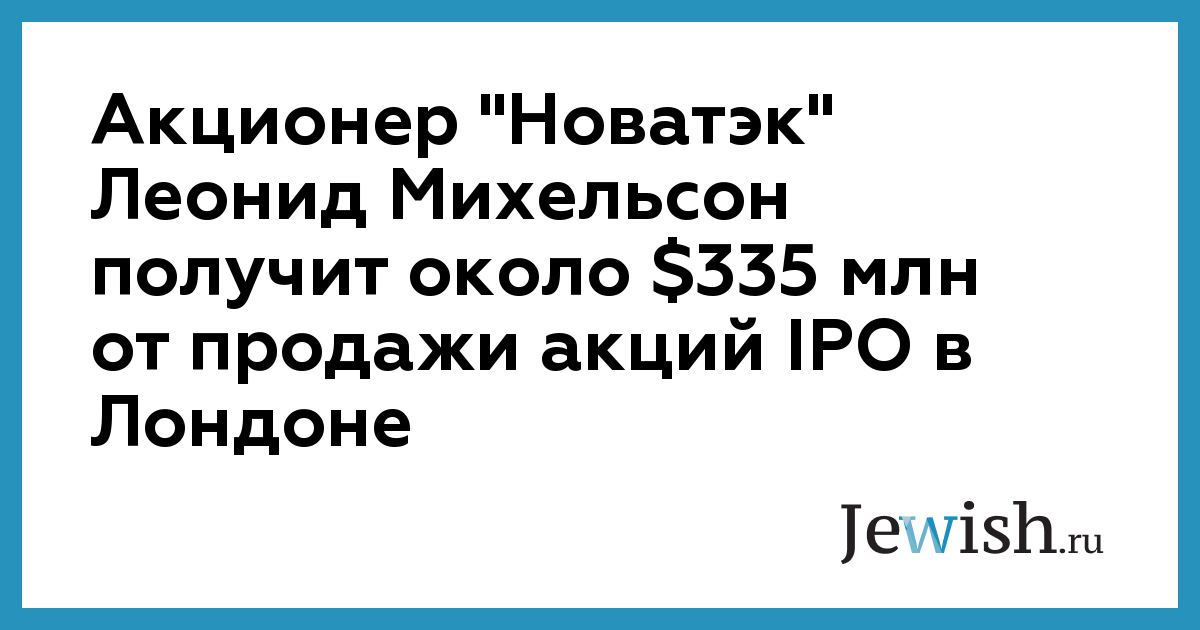 Акционер "Новатэк" Леонид Михельсон получит около $335 млн от продажи акций IPO в Лондоне