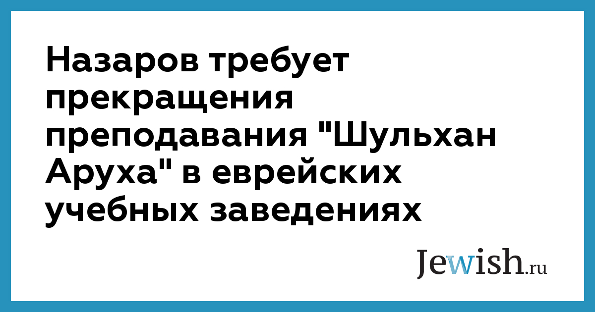 Назаров требует прекращения преподавания "Шульхан Аруха" в еврейских учебных заведениях
