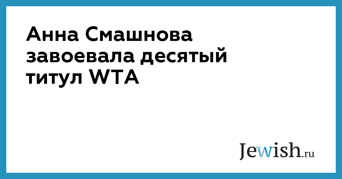 Израильтянка Анна Смашнова стала победительницей теннисного турнира серии WTA, который прошел с 11 по 17 июля в Модене (Италия). На протяжении своей карьеры Смашнова выиграла все финальные поединки турниров серии WTA, в которых принимала участие.