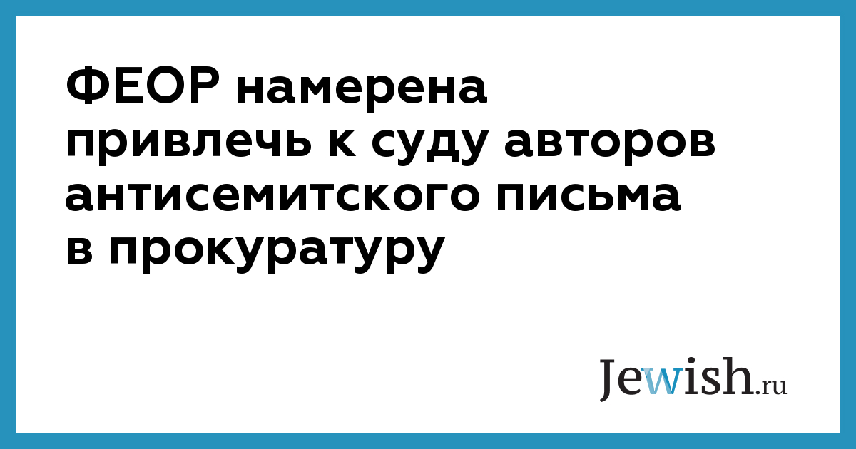ФЕОР намерена привлечь к суду авторов антисемитского письма в прокуратуру