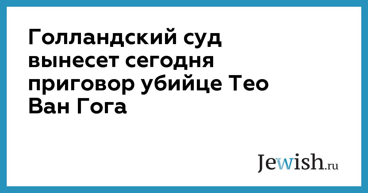 Голландский суд вынесет сегодня приговор убийце Тео Ван Гога