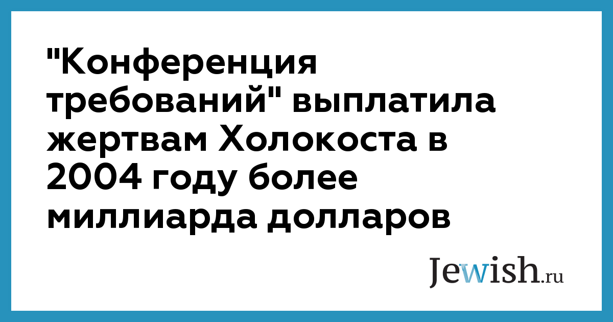 Конференция материальных требований евреев к Германии в 2004 году раздала более 1 миллиарда долларов. Таких крупных годовых выплат Конференция еще ни разу не делала.