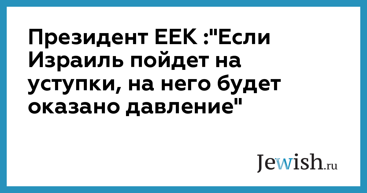 Президент ЕЕК :"Если Израиль пойдет на уступки, на него будет оказано давление"