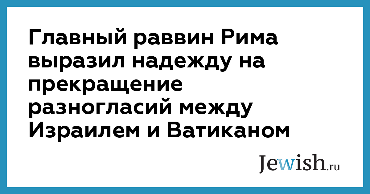 Главный раввин Рима выразил надежду на прекращение разногласий между Израилем и Ватиканом