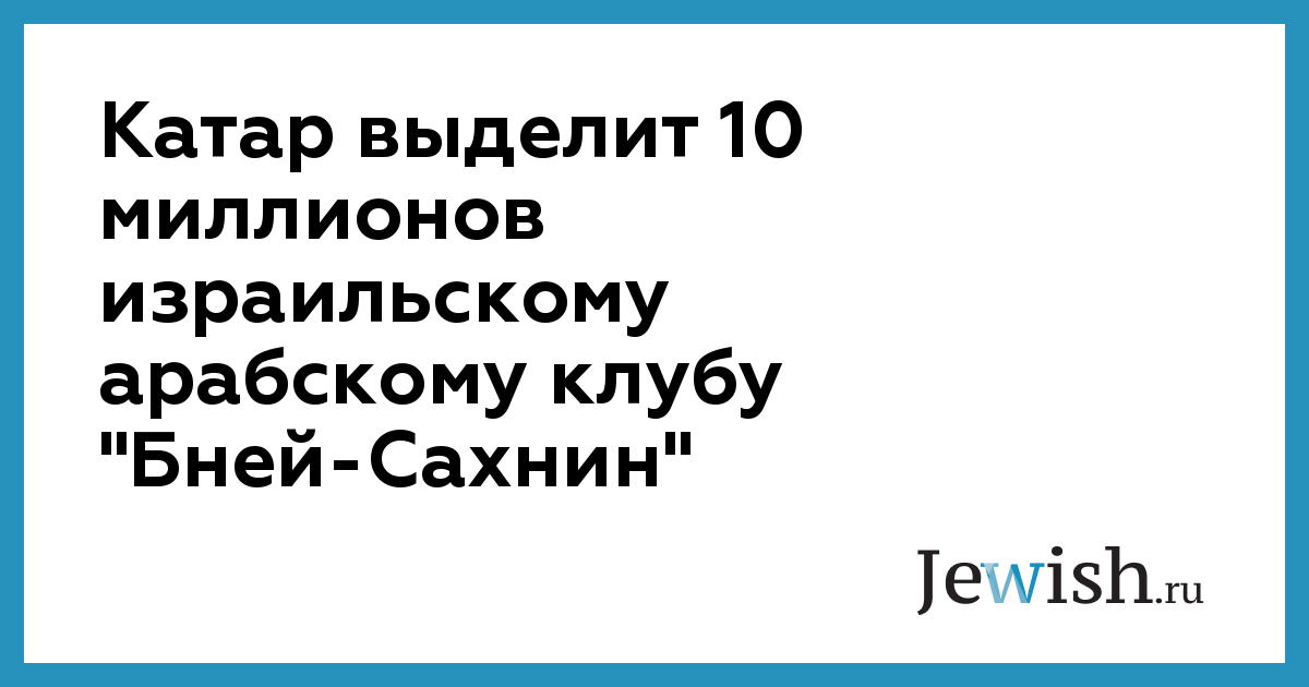 Катар выделит миллионы долларов израильскому арабскому городу Сахнин, чтобы «помочь городу из Галилеи закрепиться на спортивной карте Ближнего Востока». Надежный источник в Сахнине подтвердил во вторник 2 августа, что личные представители эмира Катара Хамада Бин-Халифа Аль-Тани встречались недавно с руководителями арабского города в Израиле, сообщает «Haaretz». Точная сумма пожертвования еще не оговорена окончательно, но, по всей вероятности, она составит, по меньшей мере, 10 миллионов долларов.