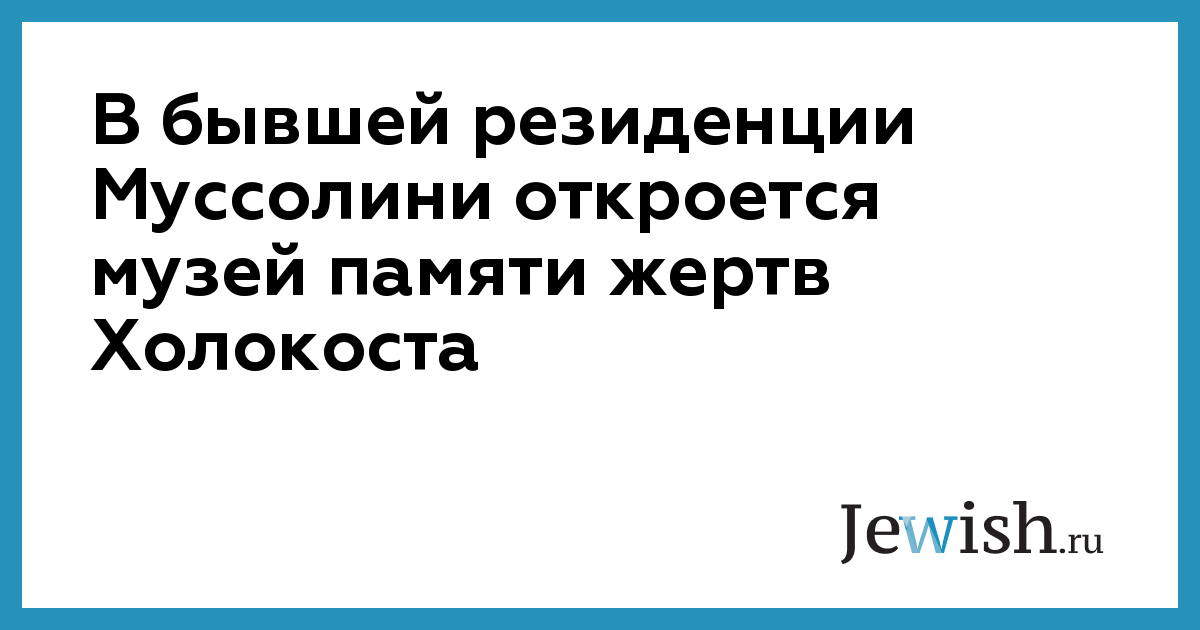 В бывшей резиденции Муссолини откроется музей памяти жертв Холокоста