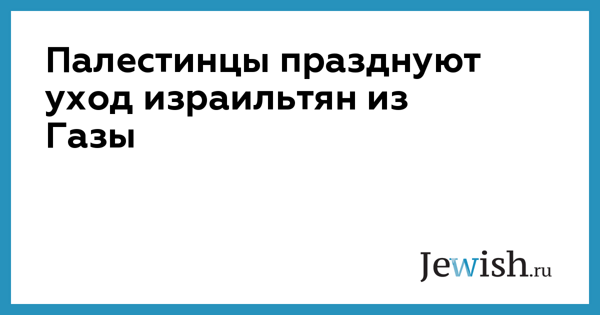 На центральной площади города Газы в четверг собралось около 10 тыс. палестинцев, которые празднуют уход Израиля с территорий в секторе Газа и части Западного берега Иордана. Как передает Reuters, празднования организованы специальным комитетом при правительстве Палестинской автономии. Палестинцы поют и танцуют, а некоторые стреляют из автоматов в воздух. Собравшиеся выкрикивают: «Сегодня — Газа, завтра — Иерусалим». Власти попросили граждан провести акцию мирно.