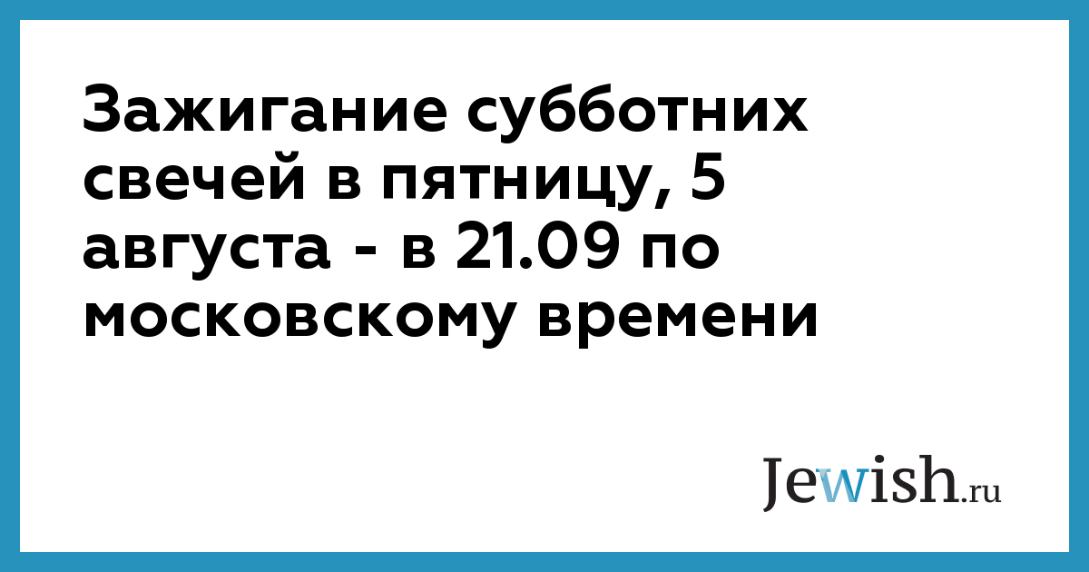 Зажигание субботних свечей в пятницу, 5 августа — в 21.09 по московскому времени