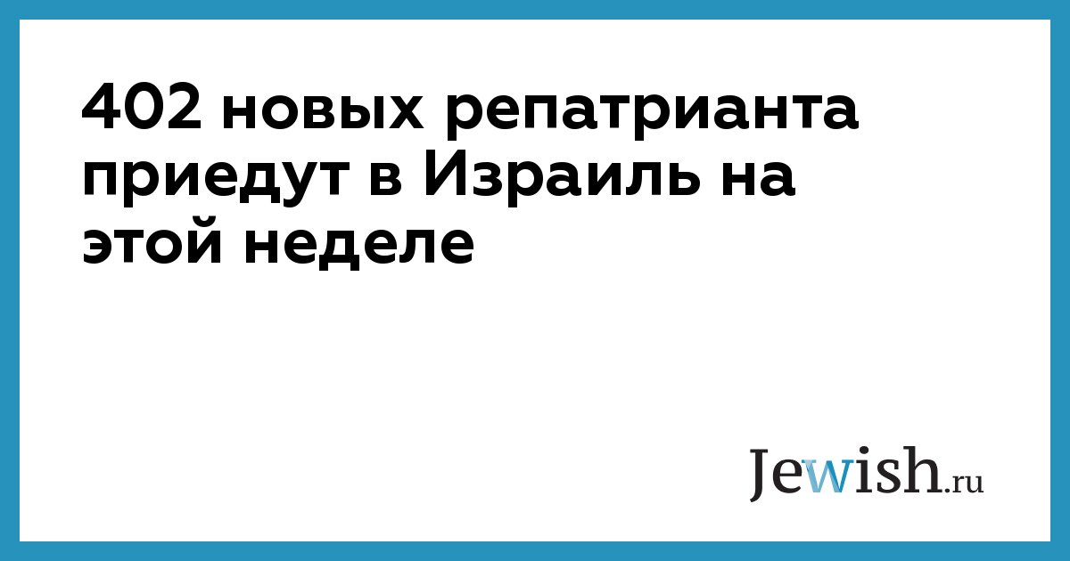 По сообщению Еврейского агентства, на этой неделе в Израиль прибудут 402 новых репатрианта.