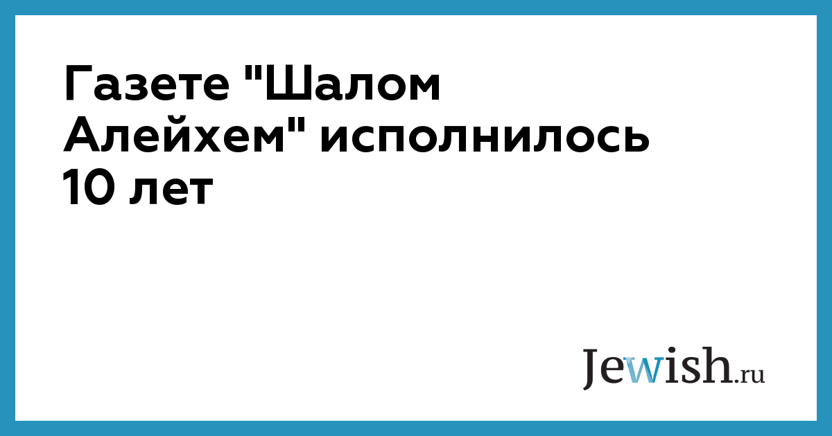 В августе еврейской газете «Шалом Алейхем» исполнилось 10 лет. Первый номер вышел в августе 1995 года в Каменец-Подольском. Создателем и первым редактором ее был талантливый человек, историк и поэт Ефим Хаят.