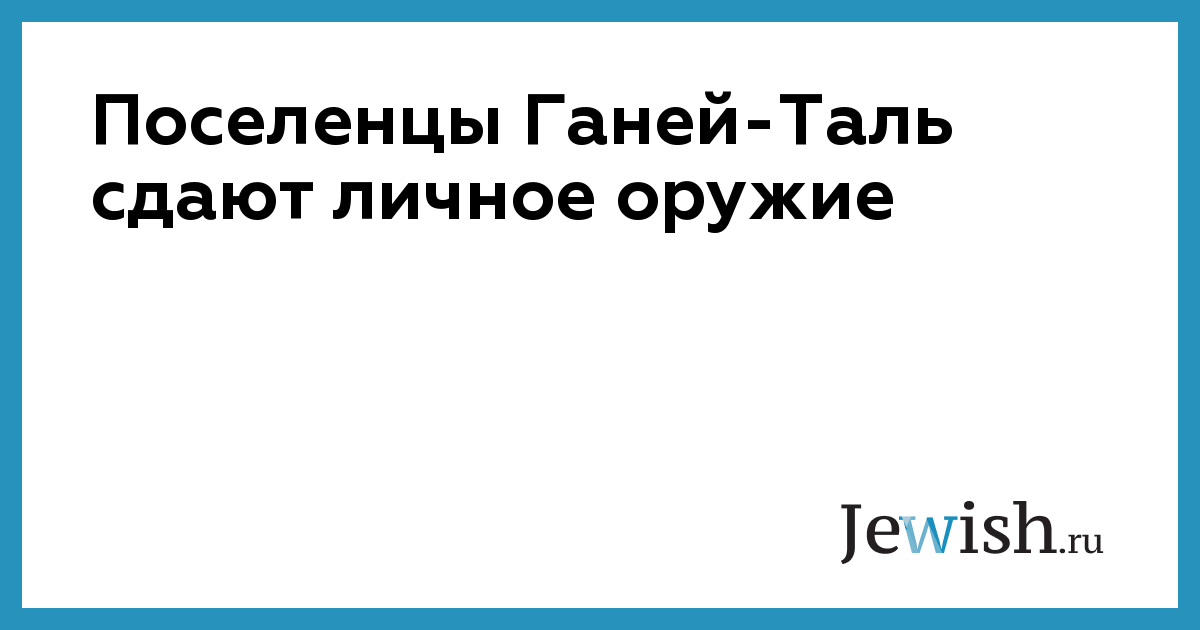 8 августа десятки жителей поселения Ганей Таль возвратили свое личное оружие в отдел по обеспечению безопасности района Гуш-Катиф. Начальник отдела Ами Шакед сообщил, что до настоящего времени уже собрано более сотни видов разного стрелкового оружия, находившегося в распоряжении поселенцев. Собранное оружие будет передано ЦАХАЛу.