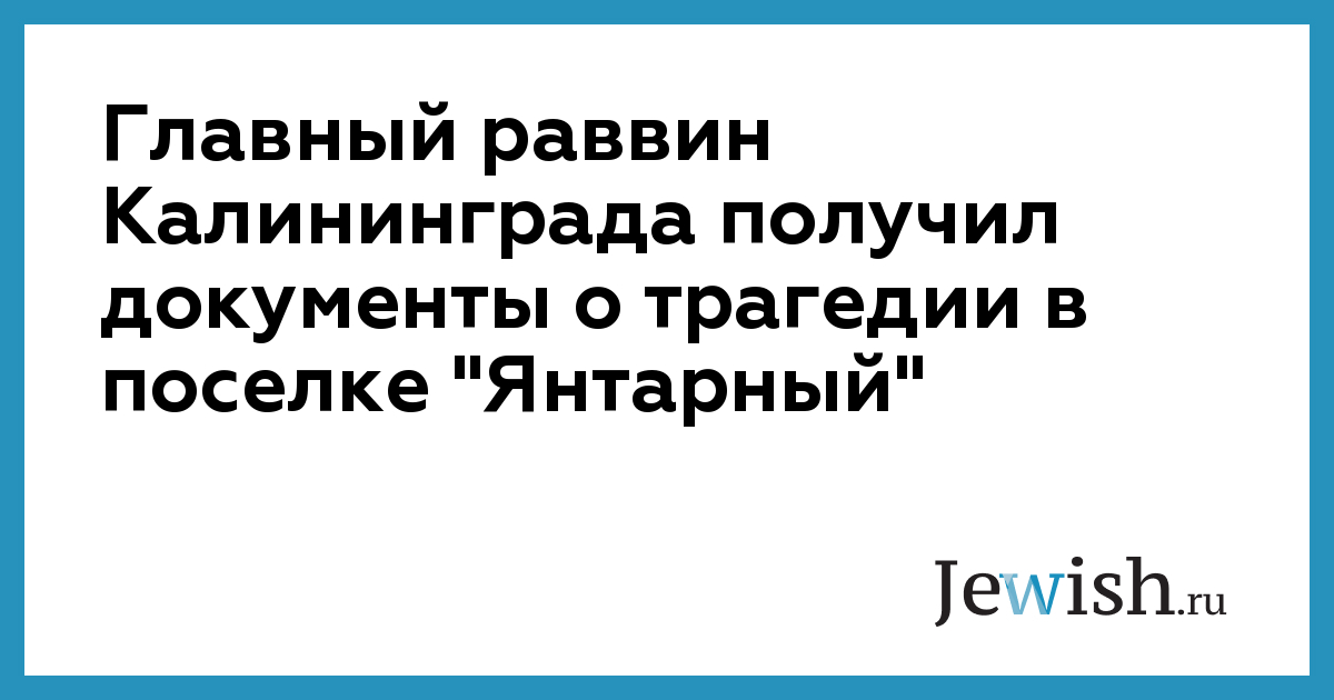 Главный раввин Калининграда получил документы о трагедии в поселке "Янтарный"