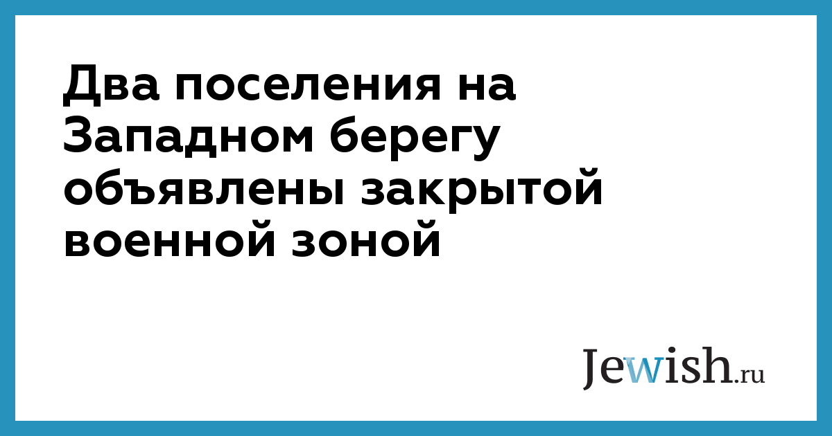 Два поселения на Западном берегу объявлены закрытой военной зоной