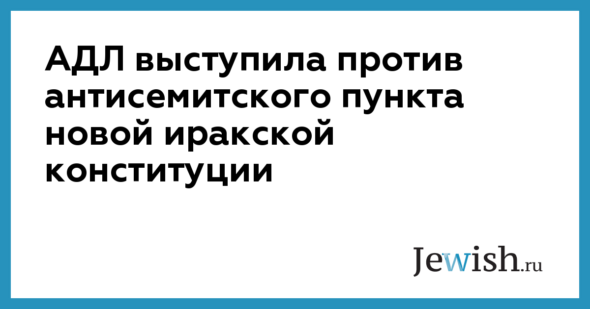 АДЛ выступила против антисемитского пункта новой иракской конституции