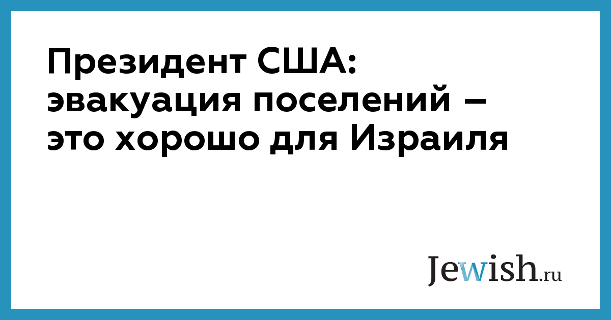 Президент США: эвакуация поселений – это хорошо для Израиля