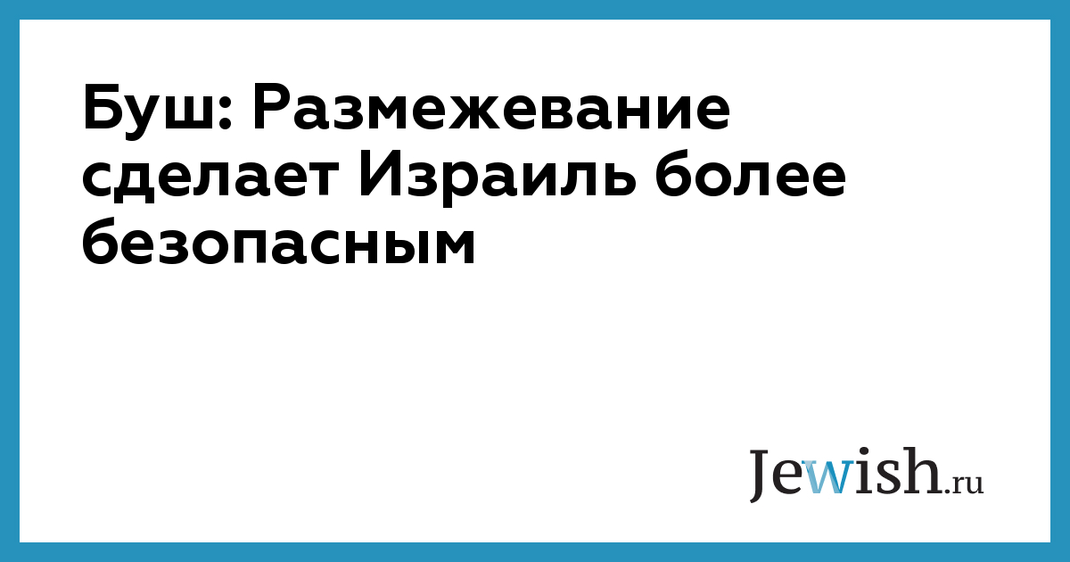 Размежевание сделает Израиль более безопасным, заявил в интервью израильскому телевидению президент США Джордж Буш. Он также выразил надежду, что вывод израильских поселений из сектора Газа подтолкнет стороны к дальнейшему выполнению плана "дорожная карта". Американский президент также отметил, что опасность нападений боевиков ХАМАС с освобождаемых Израилем территорий, конечно, существует, поскольку ХАМАС- организация террористическая. Вместе с тем, подчеркнул Дж.Буш, размежевание подтолкнет к развитию демократию в ПА, а "демократия — она всегда мирная".