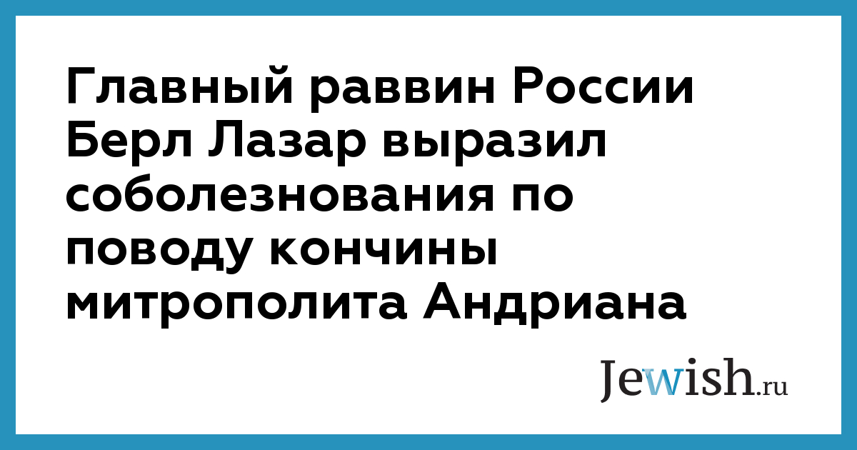 Главный раввин России Берл Лазар направил местоблюстителю престола Русской православной старообрядческой церкви Архиепископу Иоанну соболезнования в связи с кончиной митрополита Московского и всея Руси Андриана. Ниже приводится полный текст послания.