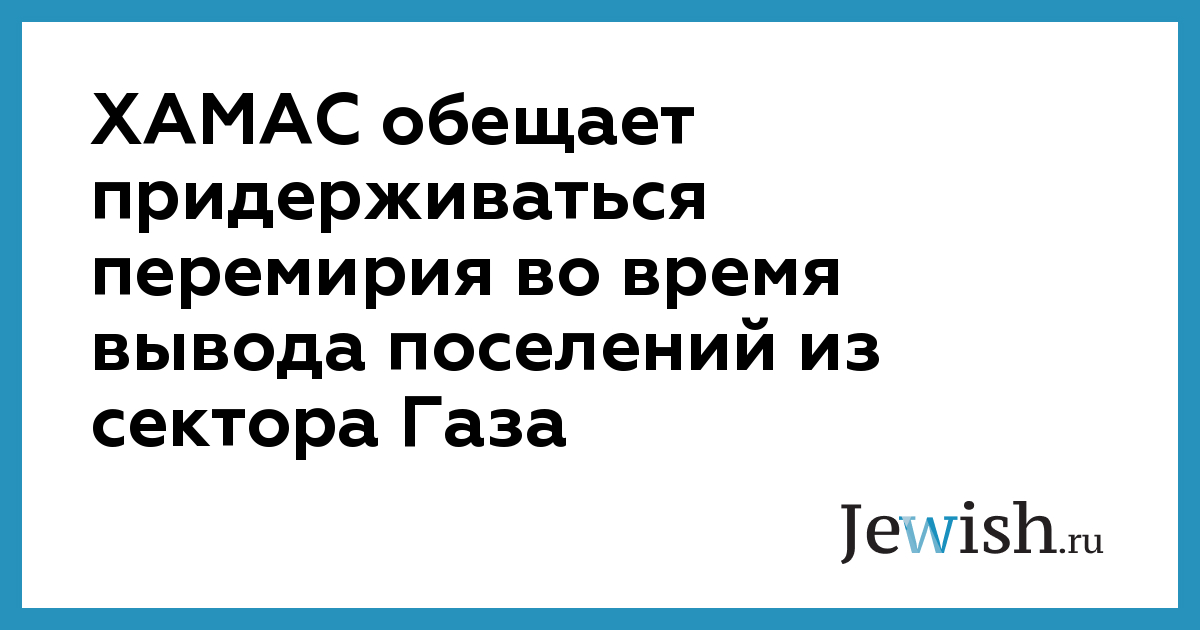 Радикальное палестинское движение ХАМАС обещает придерживаться перемирия во время вывода еврейских поселений и войск из сектора Газа.