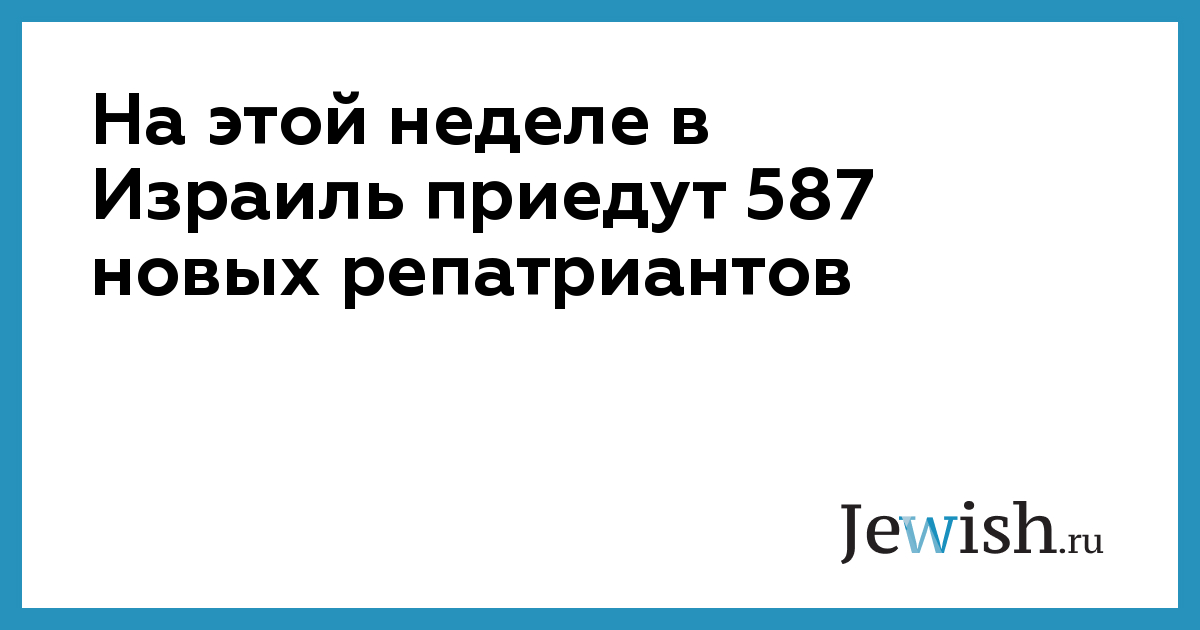 По сообщению Еврейского агентства, на этой неделе в Израиль прибудут 587 новых репатриантов.