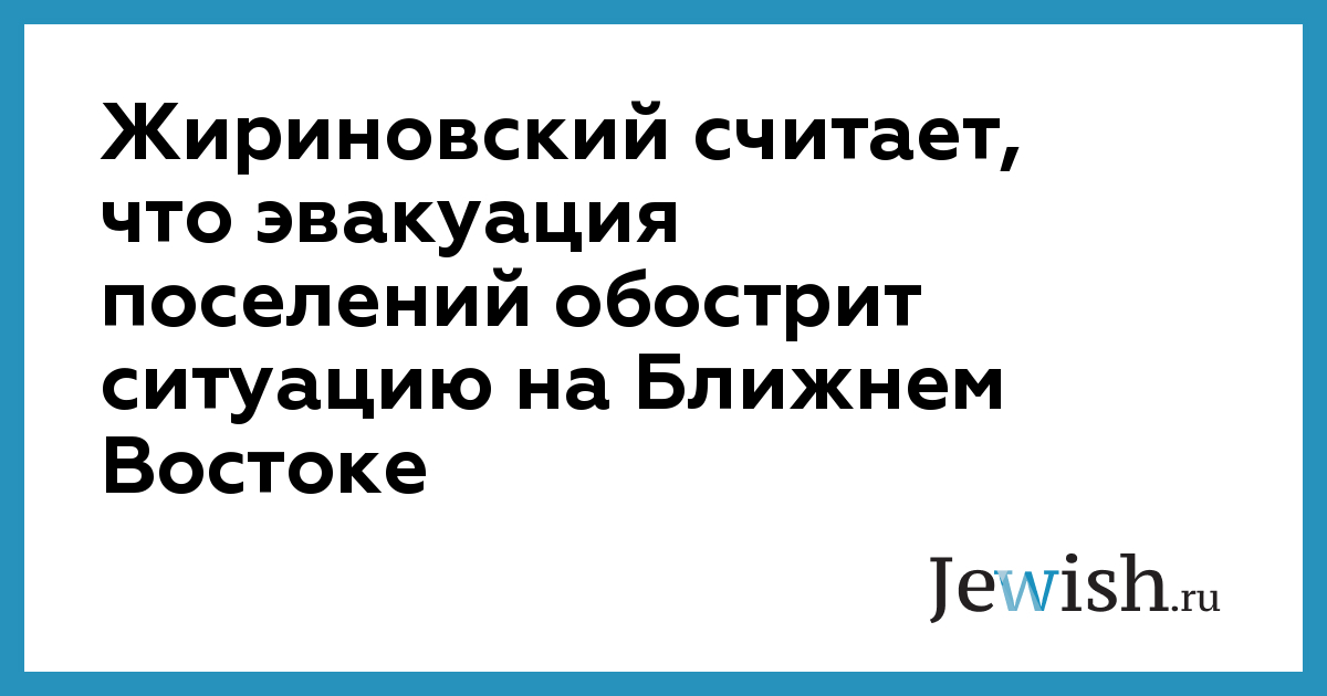 Жириновский считает, что эвакуация поселений обострит ситуацию на Ближнем Востоке